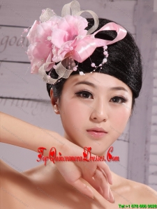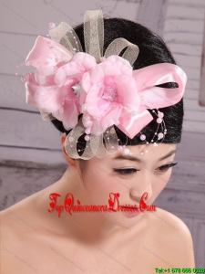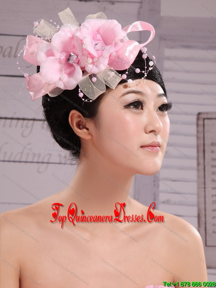 Wedding Party Pink Big Flower Pearls Chiffon and Tulle Headdress Bride