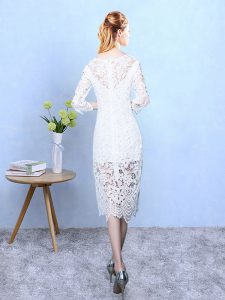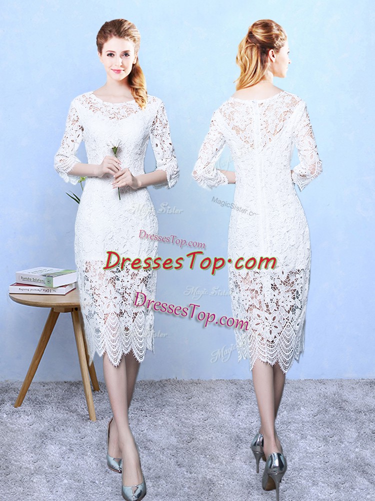 White 3 4 Length Sleeve Lace Zipper Damas Dress for Wedding Party