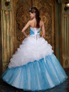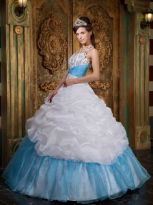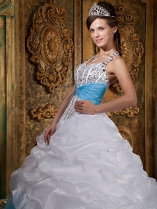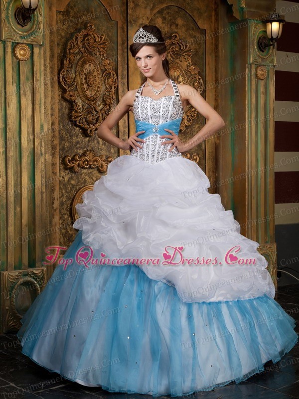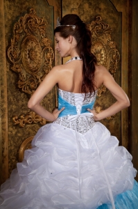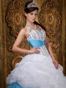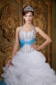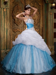 White and Baby Blue Quinceanera Dress Halter Beading