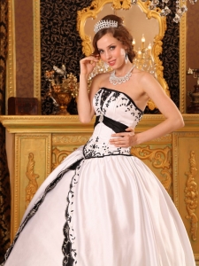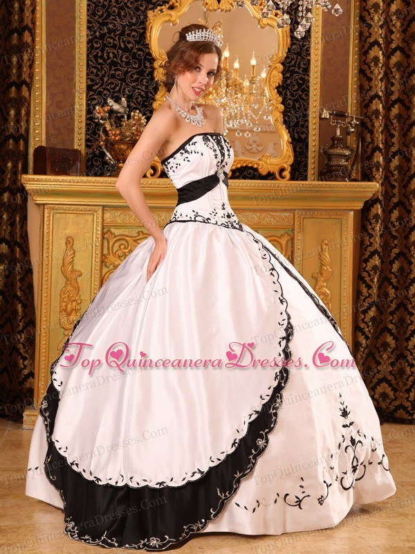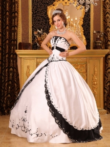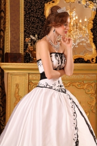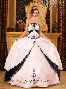 White and Black Quinceanera Gowns Dresses Embroidery