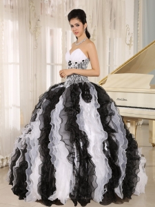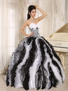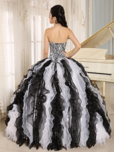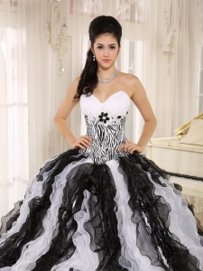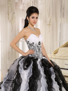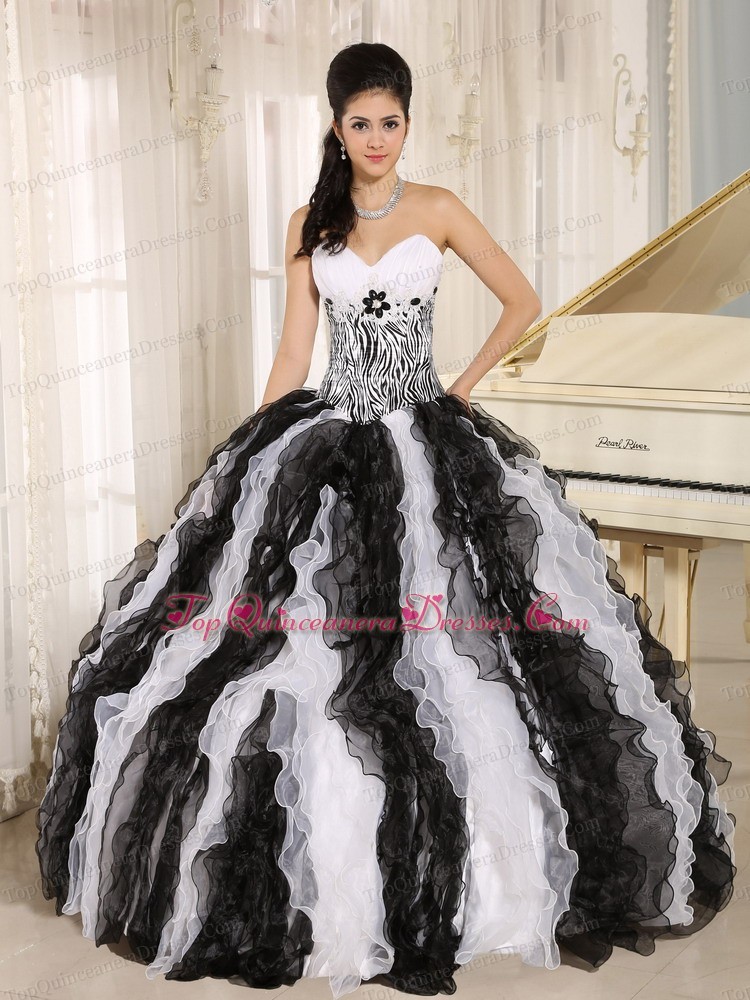 White and Black Zebra Ruffles Quinceanera Dress Appliques