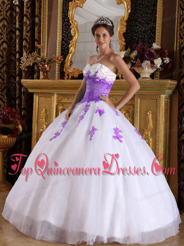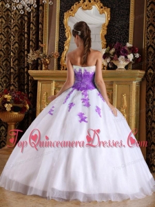 White and Purple Ball Gown Sweetheart Floor-length Appliques Organza Quinceanera Dress