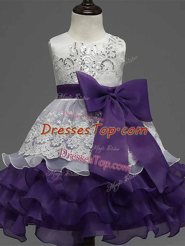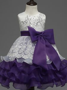 White And Purple Sleeveless Organza Zipper Child Pageant Dress for Wedding Party