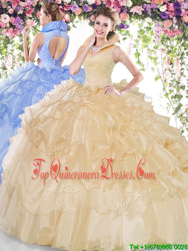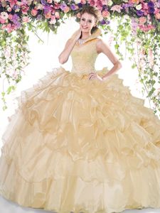 White And Purple Tulle Zipper Sweet 16 Dresses Sleeveless Floor Length Beading and Ruffles