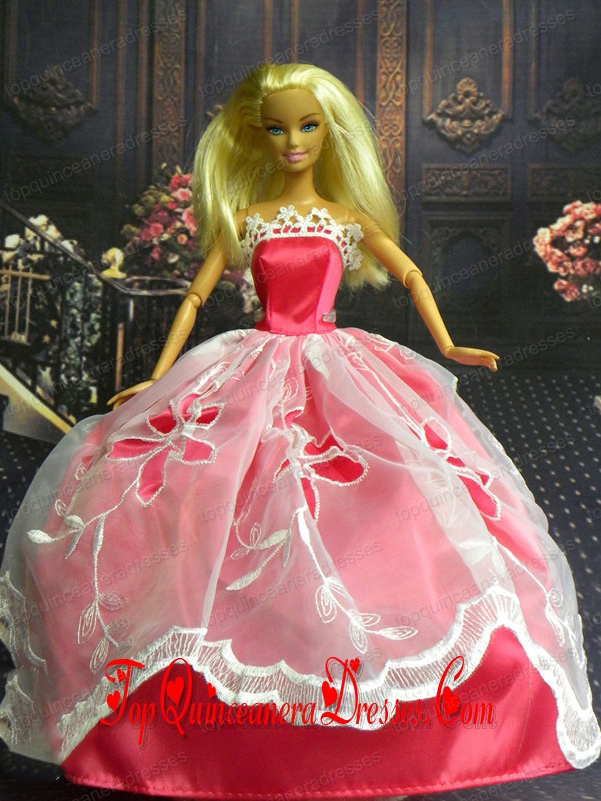 White and Red Handmade Dresses Fashion Party Clothes Gown Skirt For Barbie Doll