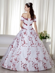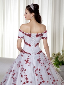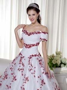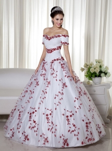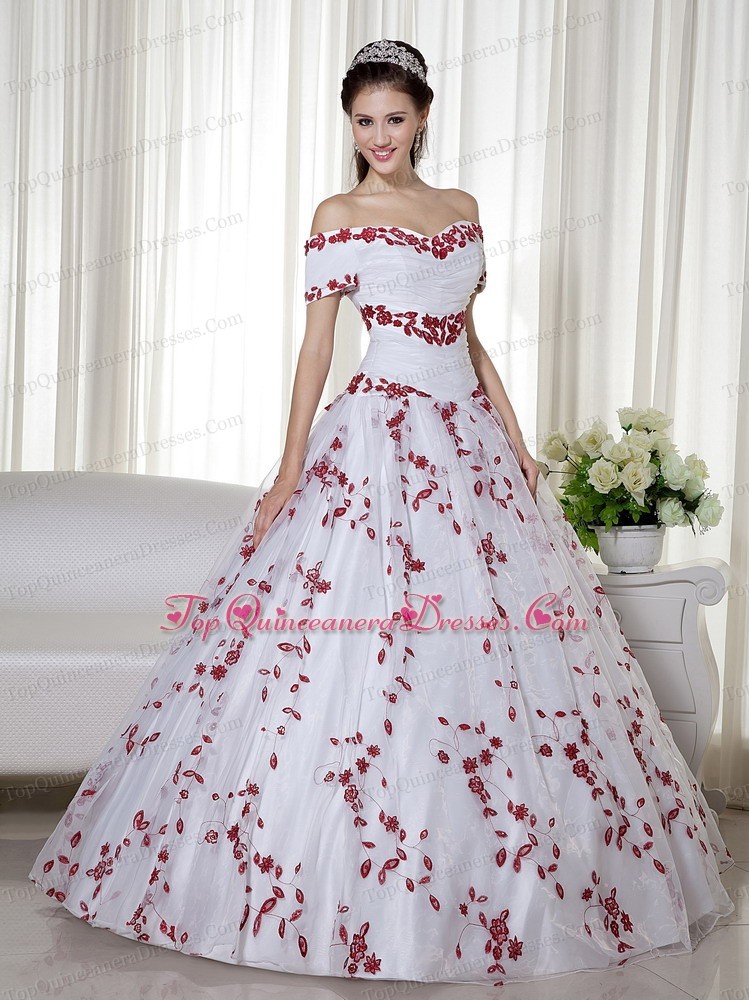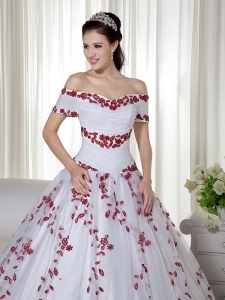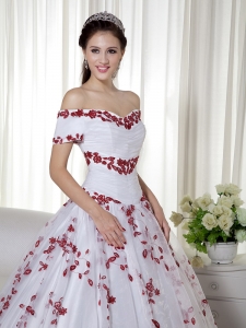 White and Red Off The Shoulder Quinceanera Dress Embroidery