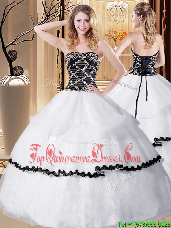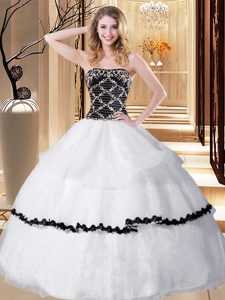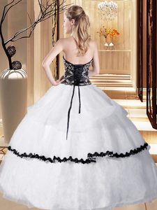 White Ball Gowns Beading Ball Gown Prom Dress Lace Up Organza Sleeveless Floor Length