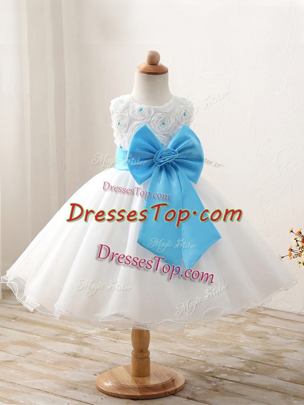 White Ball Gowns Bowknot Pageant Gowns For Girls Zipper Organza Sleeveless Mini Length