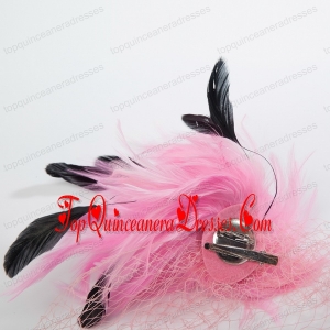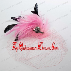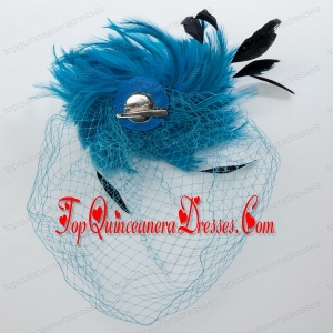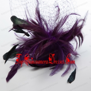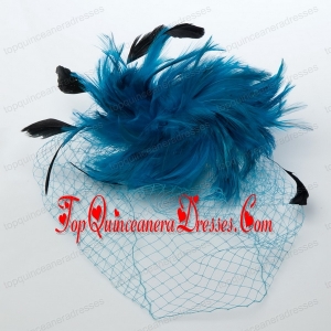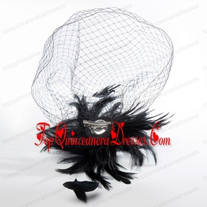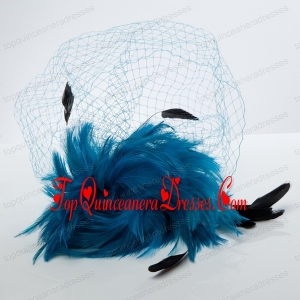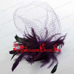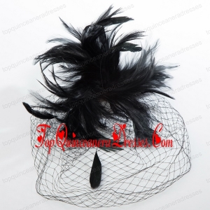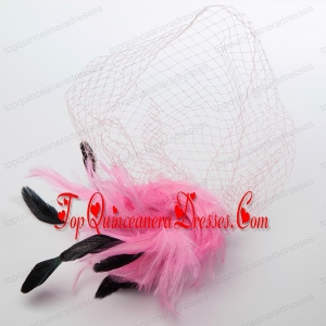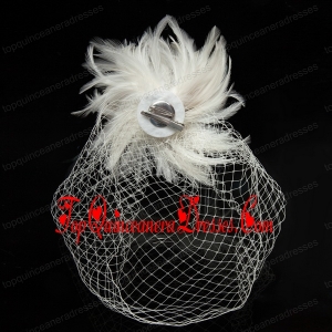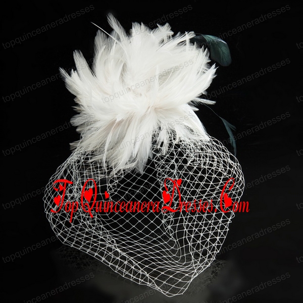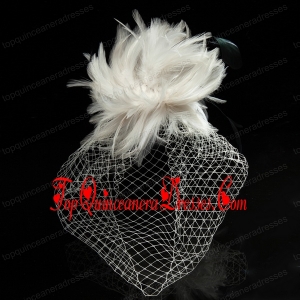 White Feather Elegant Net Yarn Briadl Hat with Imitation Pearls