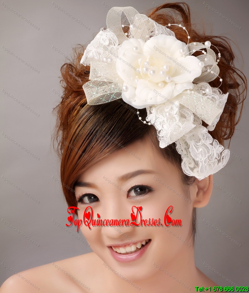 White Imitation Pearls Flower Sweet Tulle Fascinators