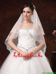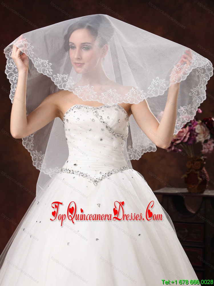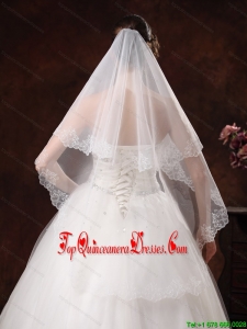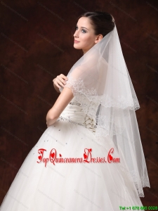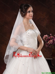 White Lace Appliques And Two-tier Organza Veil For Modest Wedding