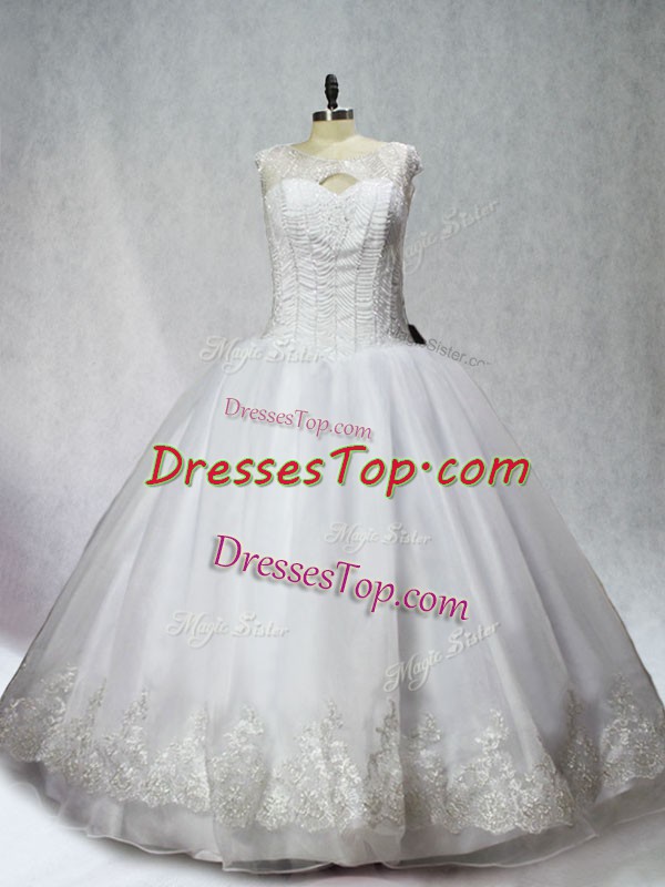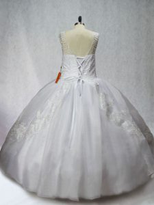 White Lace Up 15 Quinceanera Dress Beading and Appliques Sleeveless Floor Length