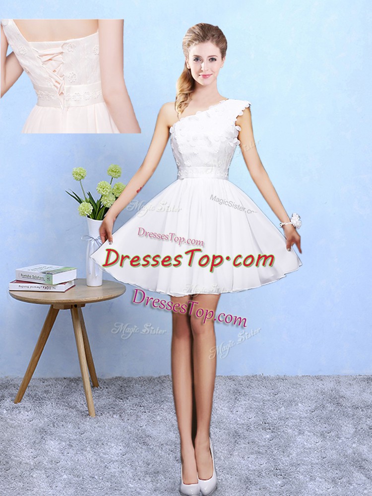White Lace Up Damas Dress Appliques Sleeveless Knee Length
