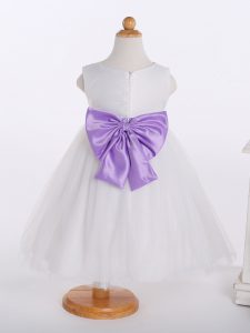 White Little Girls Pageant Dress Wedding Party with Bowknot and Hand Made Flower Scoop Sleeveless Zipper