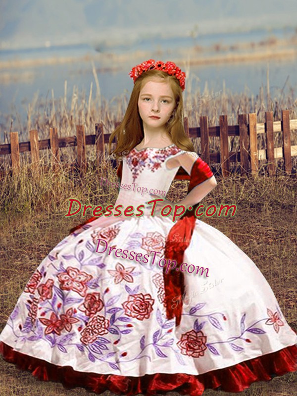 White Off The Shoulder Lace Up Embroidery Pageant Gowns For Girls Sleeveless