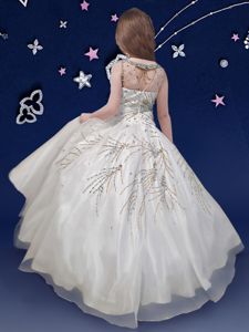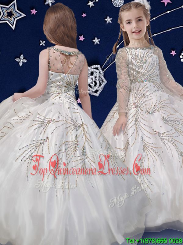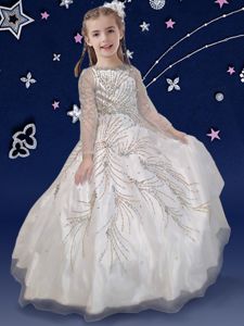 White Organza Zipper Scoop Long Sleeves Floor Length Pageant Dress for Teens Beading