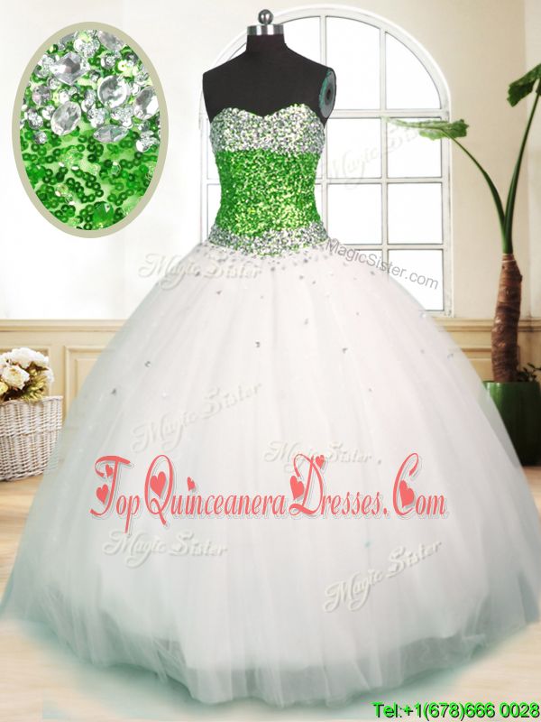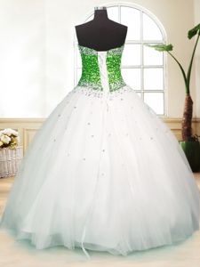 White Quinceanera Dress Military Ball and Sweet 16 and Quinceanera and For with Beading Sweetheart Sleeveless Zipper