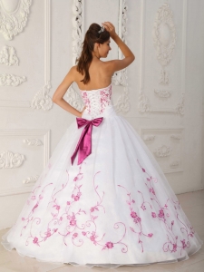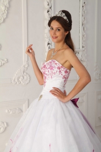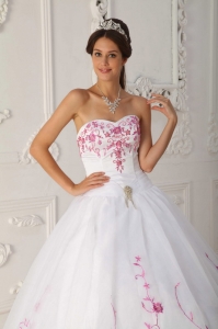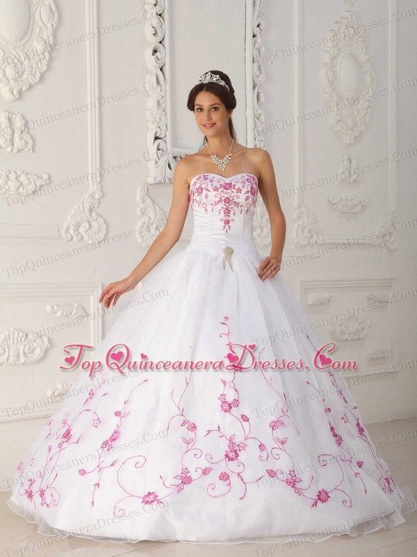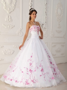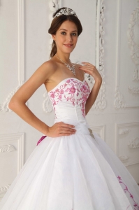 White Quinceanera Dress Strapless Embroidery Ball Gown