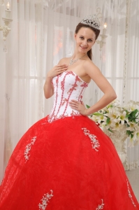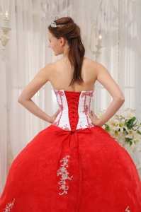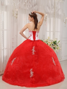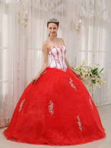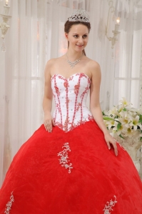 White Red Quinceanera Dress Sweetheart Taffeta Appliques
