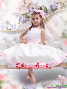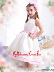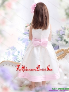 White Scoop New Arrival Little Girl Pageant Dress with Light Pink Bownot