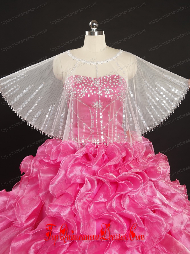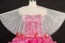 White Sector Scoop Organza Shawl with Beading