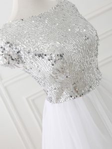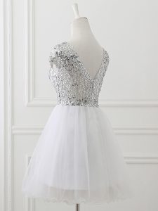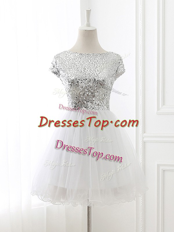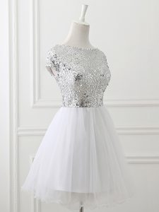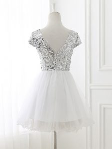 White Tulle Zipper Damas Dress Cap Sleeves Mini Length Sequins