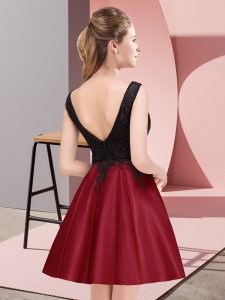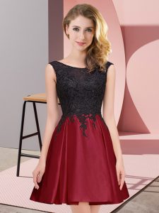 Wine Red A-line Satin Scoop Sleeveless Lace Mini Length Zipper Damas Dress