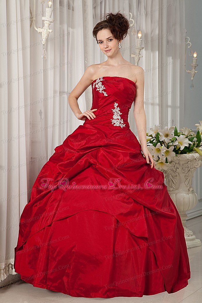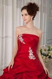 Wine Red Ball Gown Quinceanera Dresses Strapless Appliques
