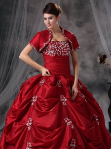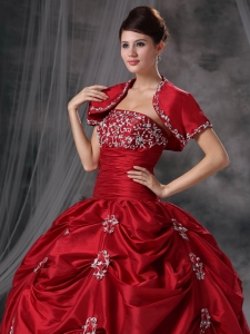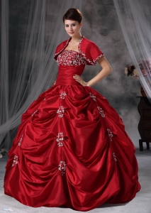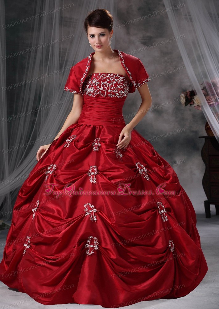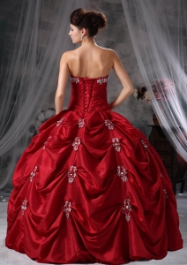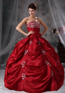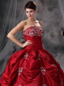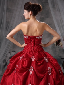 Wine Red Ball Gown Strapless Appliques Quinceanera Dress