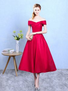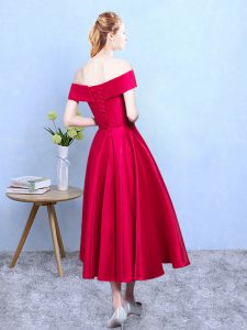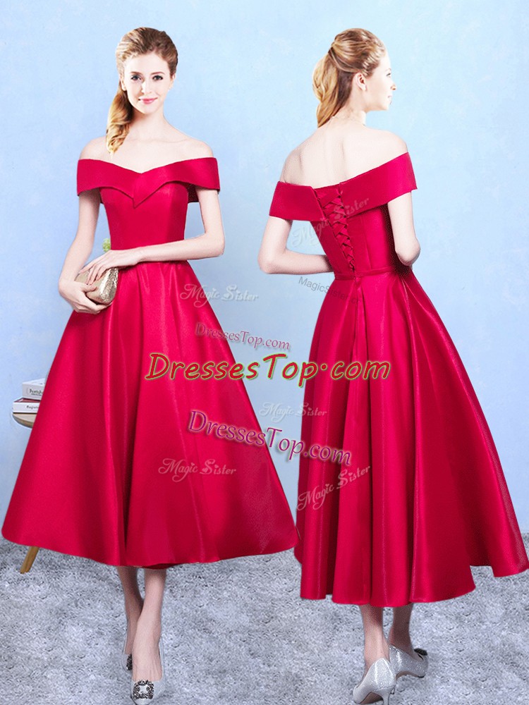 Wine Red Lace Up Dama Dress Appliques Sleeveless Tea Length