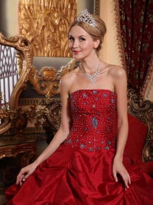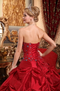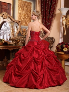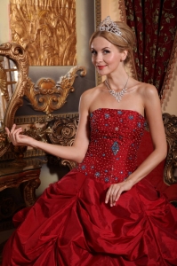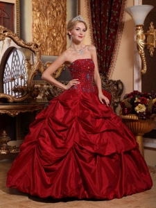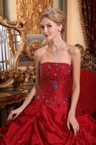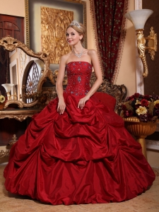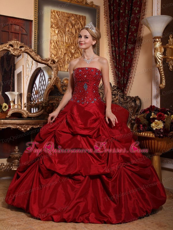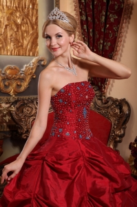 Wine Red Quinceanera Beading Dress Strapless Taffeta