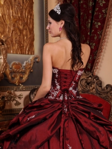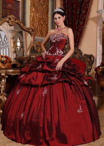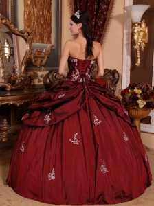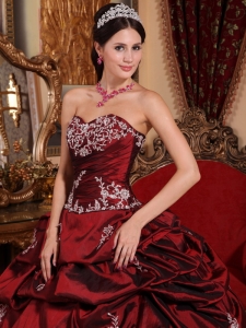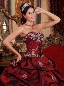 Wine Red Quinceanera Dress Beaded Sweetheart Taffeta Appliques