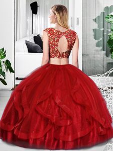 Wine Red Sleeveless Tulle Zipper Quinceanera Gowns for Military Ball and Sweet 16 and Quinceanera