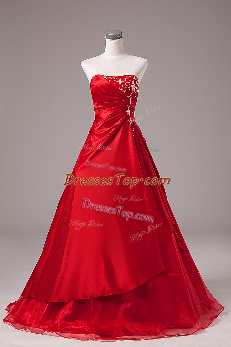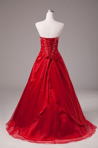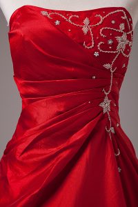 Wine Red Strapless Lace Up Beading and Embroidery Sweet 16 Quinceanera Dress Sleeveless