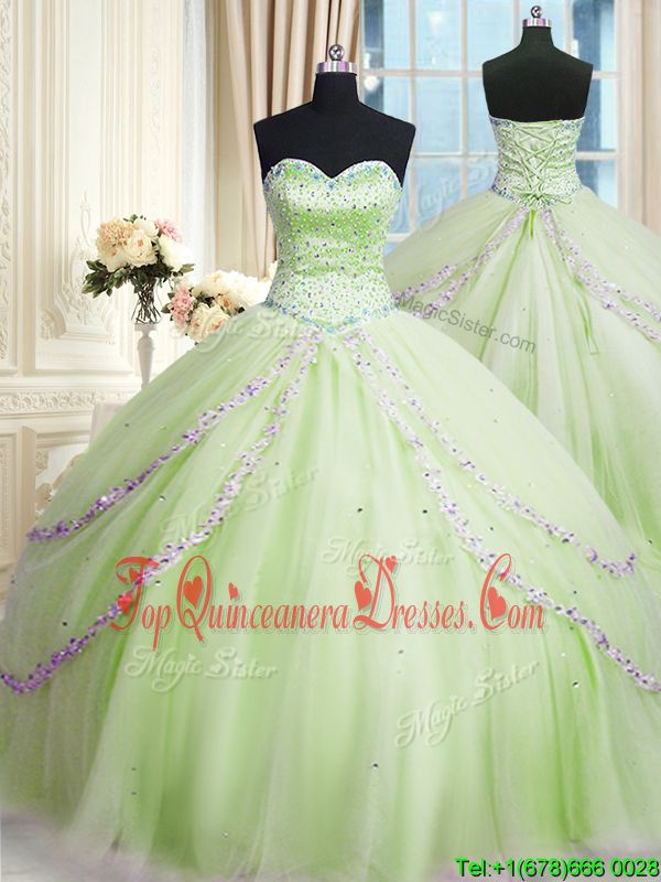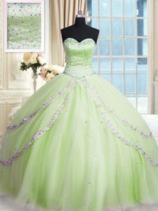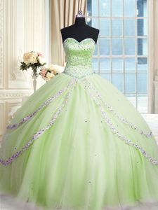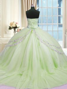 With Train Ball Gowns Sleeveless Yellow Green Quince Ball Gowns Court Train Lace Up