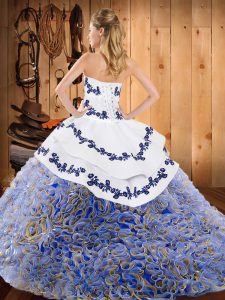 With Train Multi-color 15th Birthday Dress Satin and Fabric With Rolling Flowers Sweep Train Sleeveless Embroidery