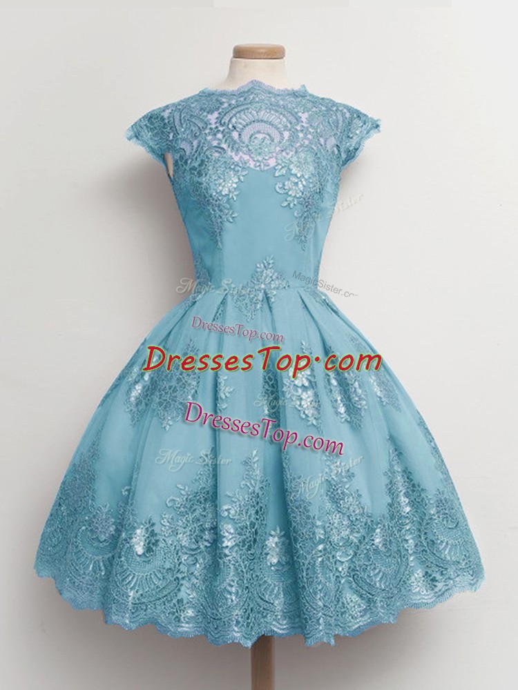 Wonderful Aqua Blue Cap Sleeves Knee Length Lace Lace Up Quinceanera Court of Honor Dress