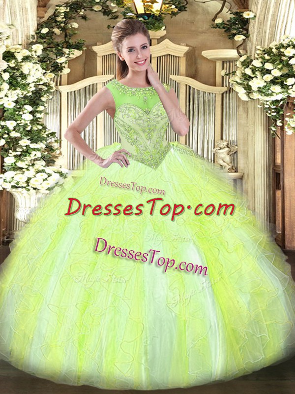 Wonderful Ball Gowns Quinceanera Gown Yellow Green Scoop Organza Sleeveless Floor Length Lace Up
