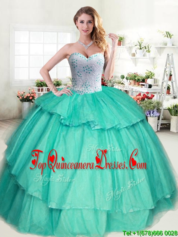 Wonderful Beaded and Ruffled Layers Sweet 16 Dress in Apple Green for Spring