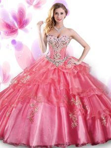 Wonderful Floor Length Ball Gowns Sleeveless Coral Red Sweet 16 Quinceanera Dress Lace Up