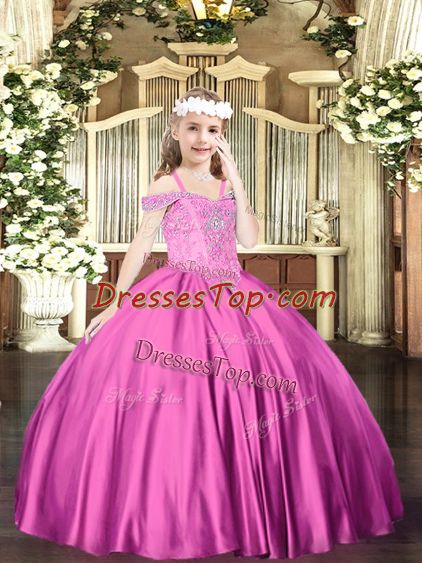 Wonderful Fuchsia Sleeveless Satin Lace Up Custom Made Pageant Dress for Party and Quinceanera