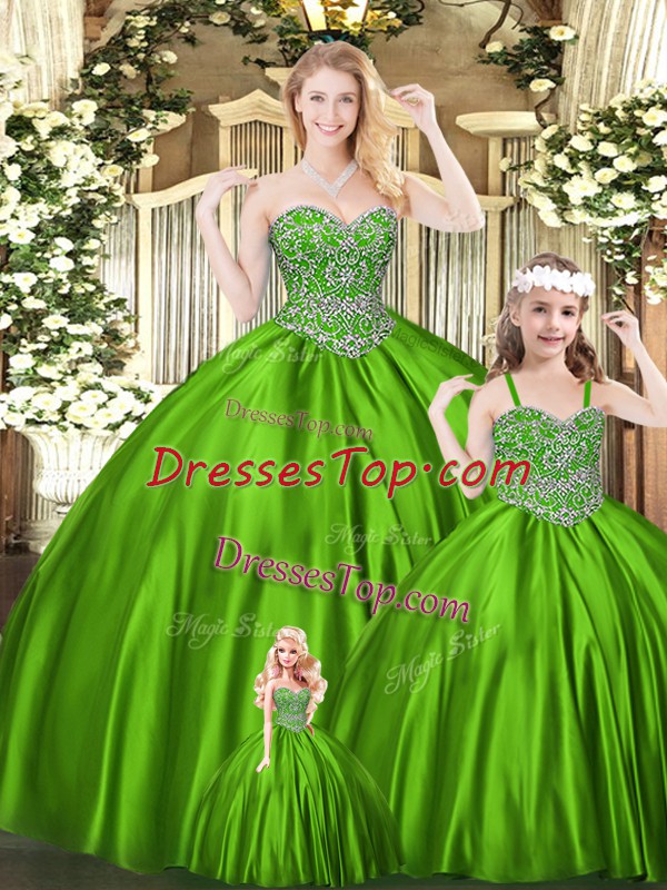 Wonderful Green Ball Gowns Sweetheart Sleeveless Tulle Floor Length Lace Up Beading Quinceanera Gowns