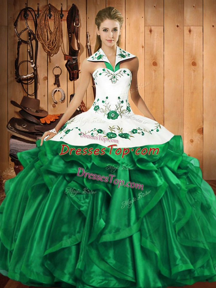 Wonderful Green Lace Up 15 Quinceanera Dress Embroidery and Ruffles Sleeveless Floor Length