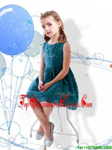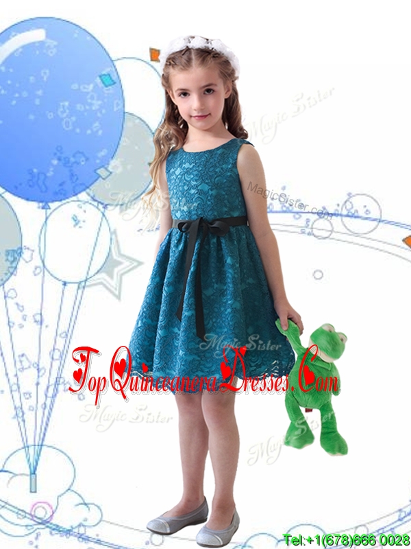 Wonderful Laced and Sashed Scoop Mini Quinceanera Dress in Teal