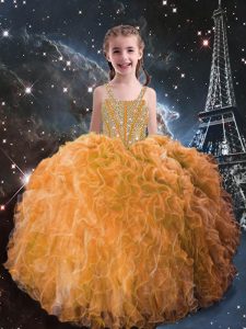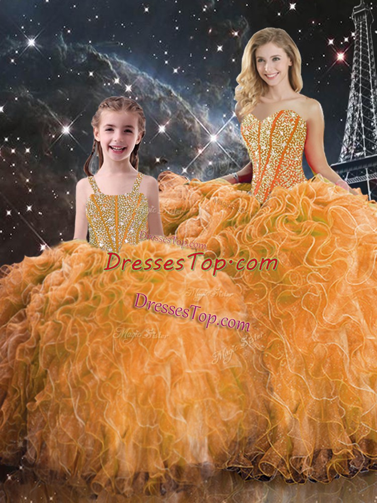 Wonderful Orange Ball Gowns Beading and Ruffles Sweet 16 Dresses Lace Up Organza Sleeveless Floor Length