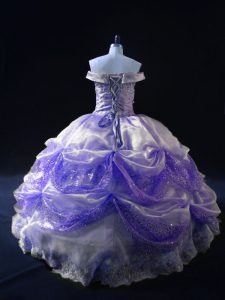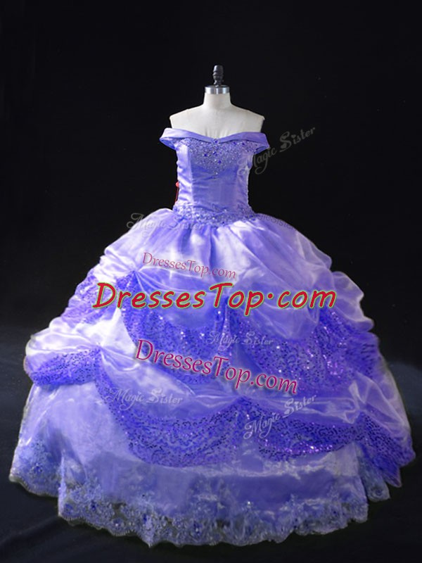 Wonderful Organza Off The Shoulder Sleeveless Lace Up Beading and Pick Ups Quinceanera Dress in Lavender
