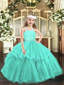 Wonderful Organza Sleeveless Floor Length Kids Pageant Dress and Beading and Lace