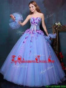 Wonderful Really Puffy A Line Quinceanera Dress with Appliques and Bowknot