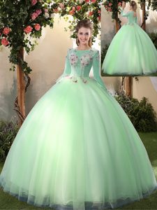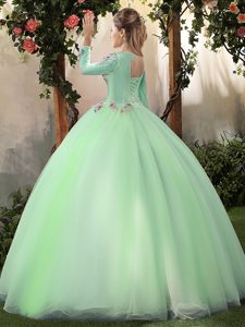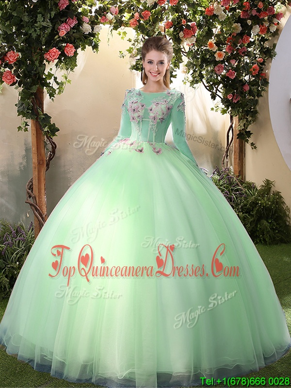 Wonderful Scoop Apple Green Long Sleeves Appliques Floor Length Quinceanera Gowns
