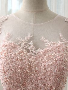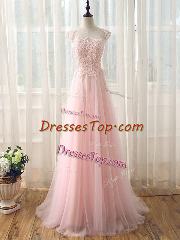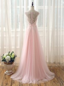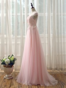 Wonderful Scoop Cap Sleeves Tulle Dama Dress for Quinceanera Beading and Lace Brush Train Zipper
